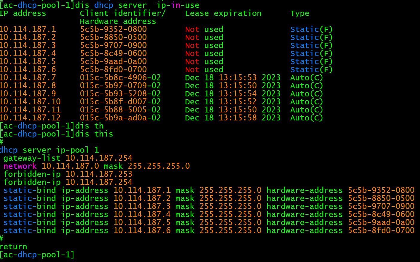 你好,怎么在AC上配置静态的地址,也是在dhcp地址池绑定吗