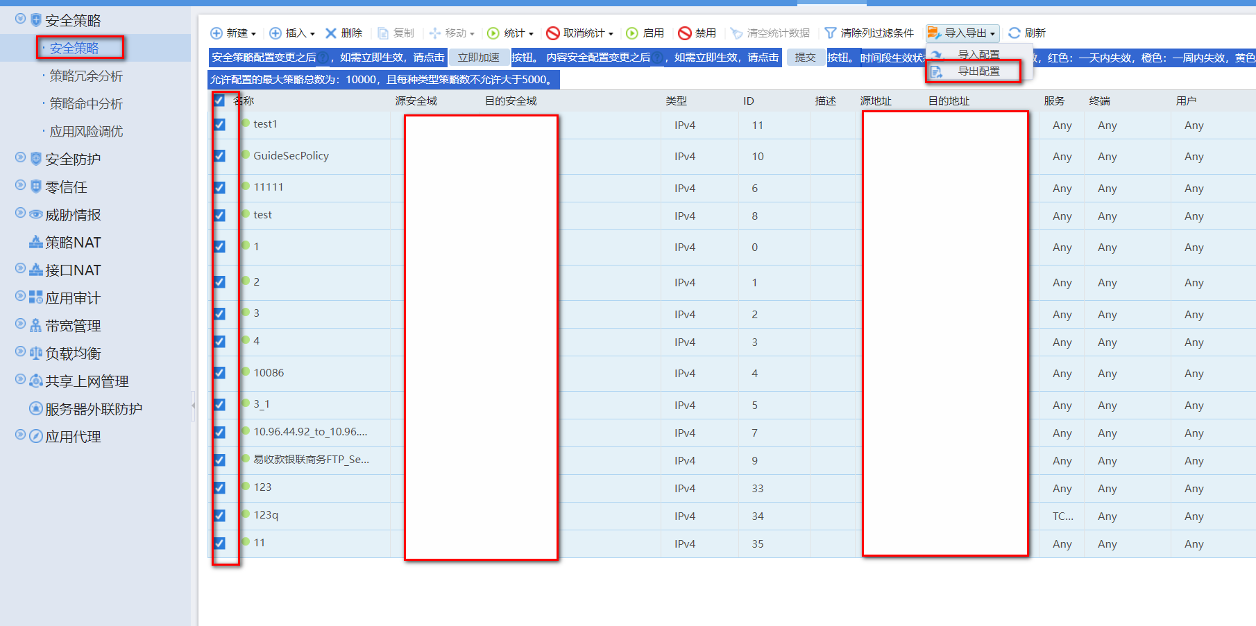 刚才选中一条策略试了一下导出,但是打开后发现导出了是全部策略,这是为什么啊?