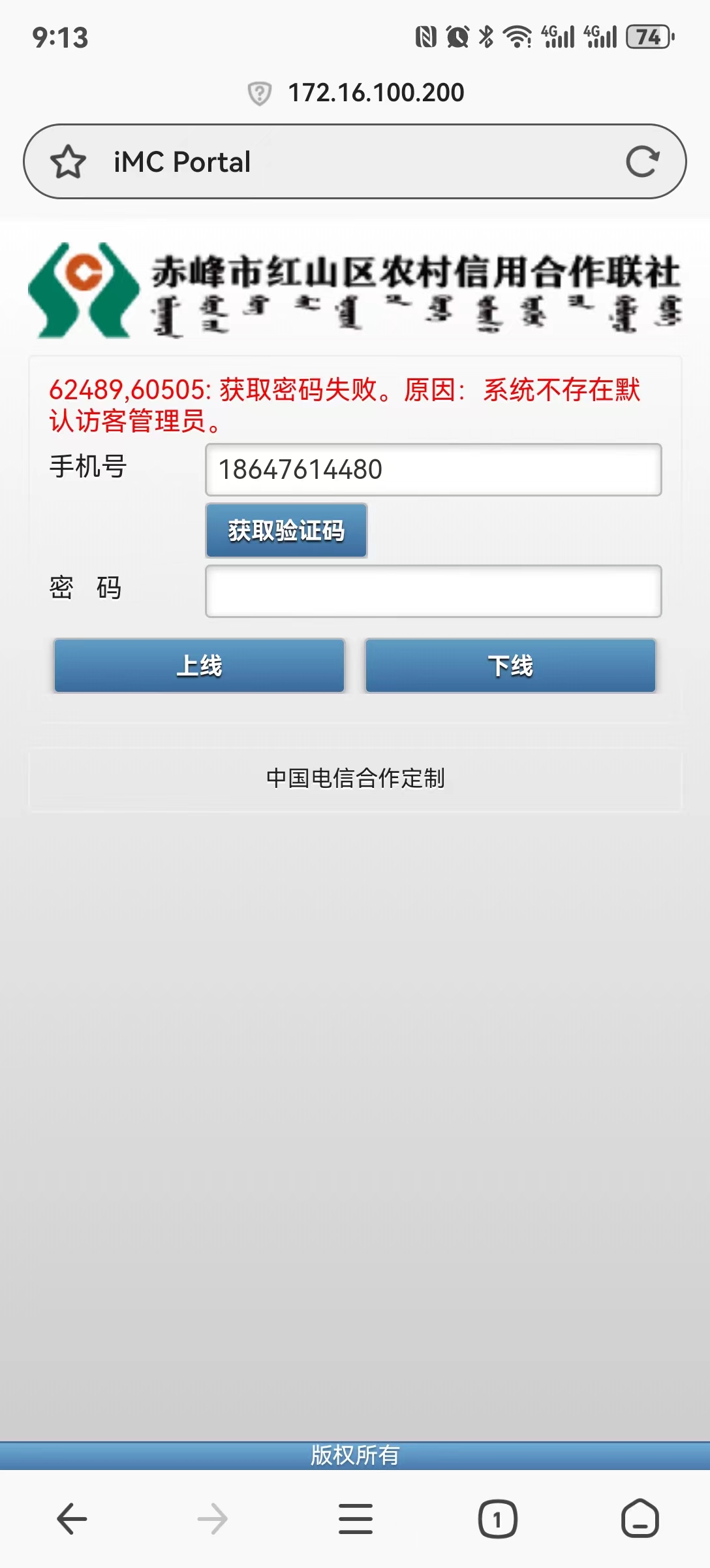 检查IMC侧访客管理员配置或接入用户输入那个访客管理员情况