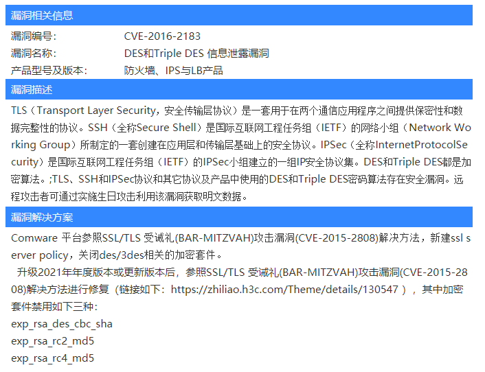 核心交换机10506X高危漏洞怎么处理,SSL/TLS协议信息泄露漏洞(CVE-2016-2183)【原理扫描】