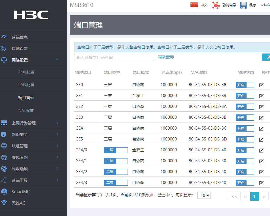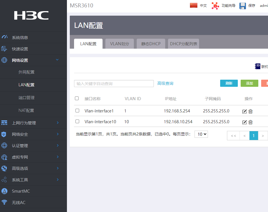 路由器是msr3610,路由ip是192.168.5.254,vlan1是192.168.5.254,vlan10是192.168.10.254,交换机接的路由器GE4/0端口,交换机ip是192.168.5.253,vlan同路由器,现在在SmartMC里面路由器无法添加交换机。