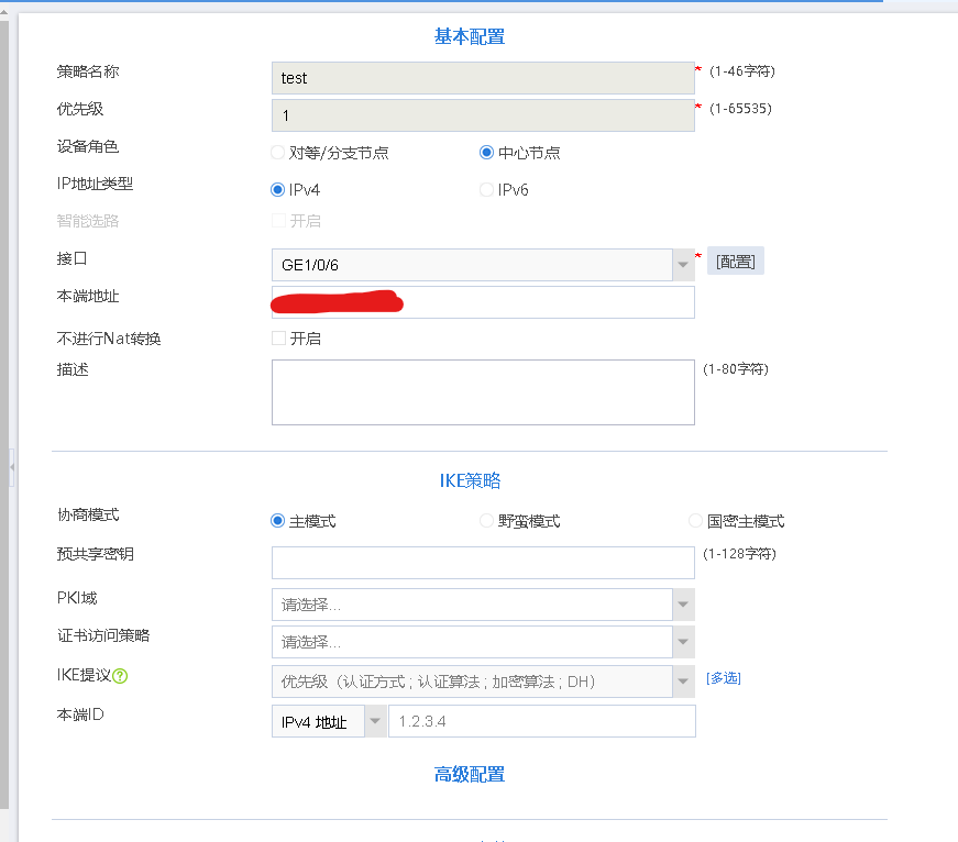 请问我该如何使用模板的方式去做ipsec?我当前是在WEB页面里找到VPN-IPSEC-策略-新建(如截图),这个入口对吗?我该配置哪些项呢?或者这个模板的方式如何去做呢?