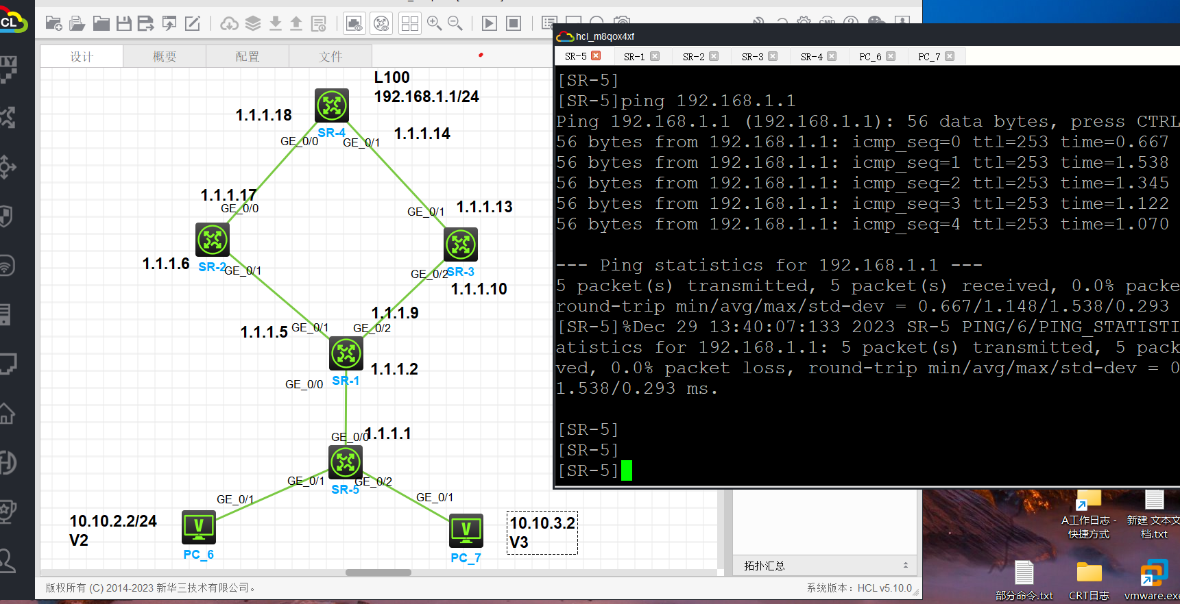 在实验中,SR1,2,3,4之间是ospf 1 area0 ,在sr1上面ospf 引入直连路由,sr5 默认路由指向1.1.1.2 , pc6.。pc7分别在vlan2,3,。pc6可以ping网关,为什么SR5无法学习到192.168.1.1的路由?需要怎么操作才能和192.168.1.1ping通