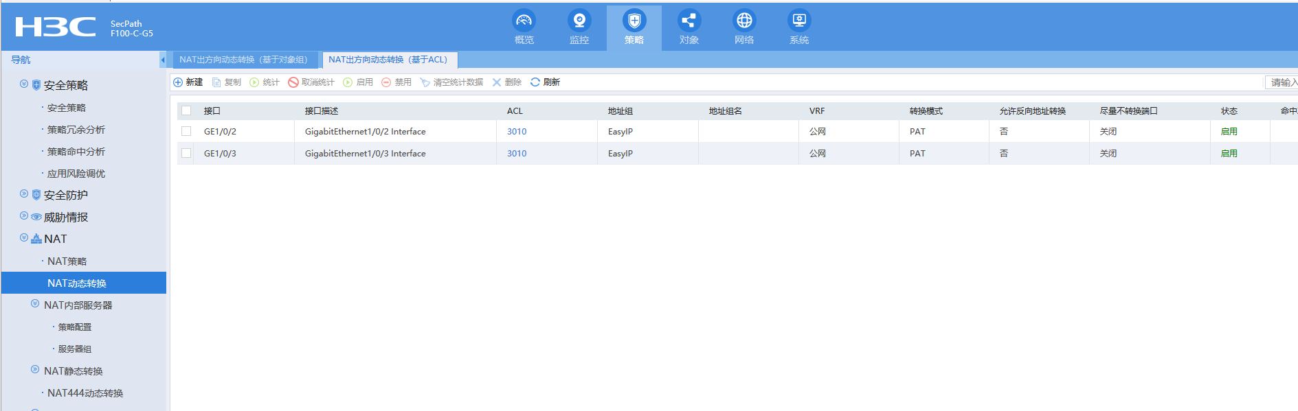 部分版本web不显示了,可以用nat策略配置NAT功能,或者到命令行配置接口na"t
