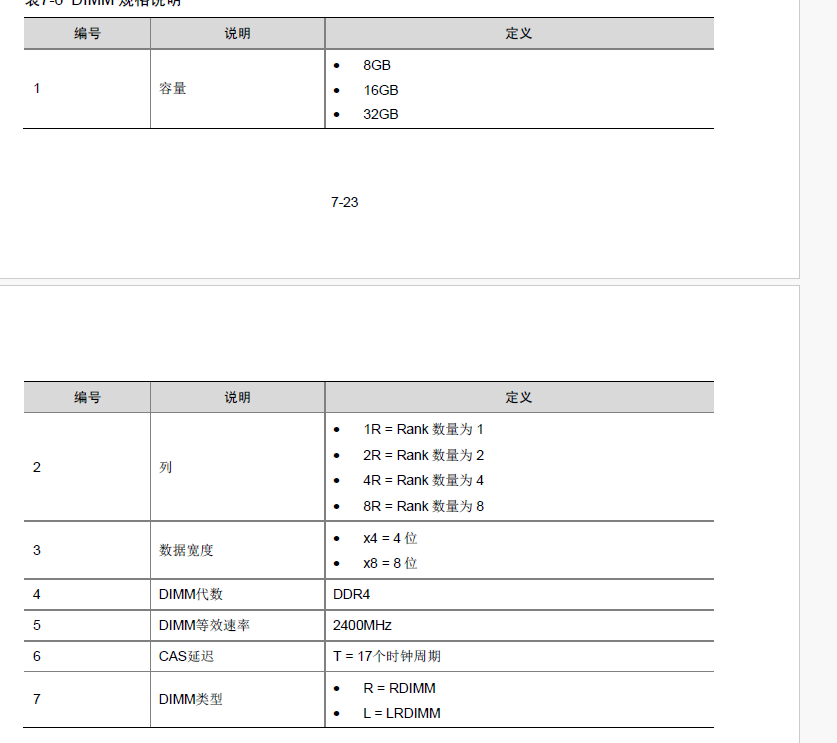 最多可支持24 根DDR4 内存条• 支持的单根RDIMM 容量:8GB、16GB 和32GB• 最大内存容量为768GB