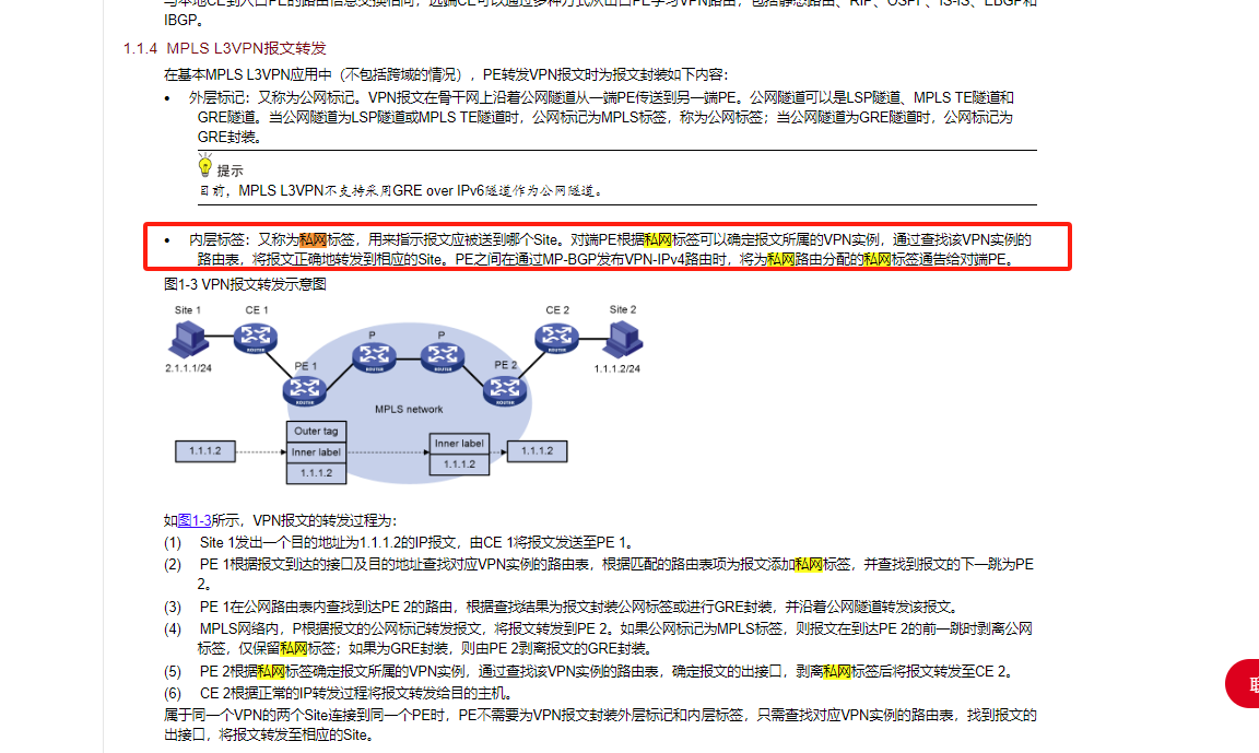 您好,私网标签是由MP-BGP分发,目的是用于指导VPN的形成