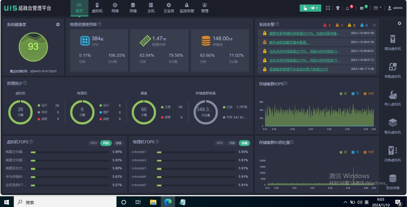26台虚拟机每台虚拟机都是空配置运行没有业务,平均每台只占用1G左右,但为什么首页中的“物理内存”已经占用了总内存的63.94%,总内存为1.47T。