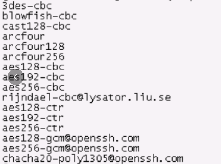 然后我找对面SFTP服务器人员,他给我看他们那边支持的加密方式如下