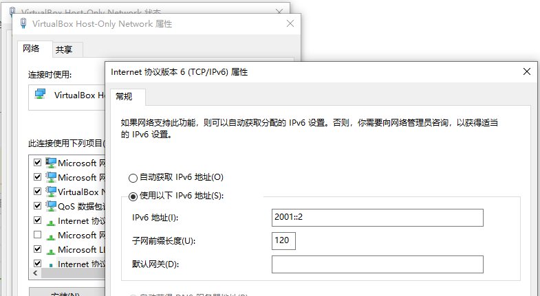 2、配置本地电脑网卡ipv6地址: