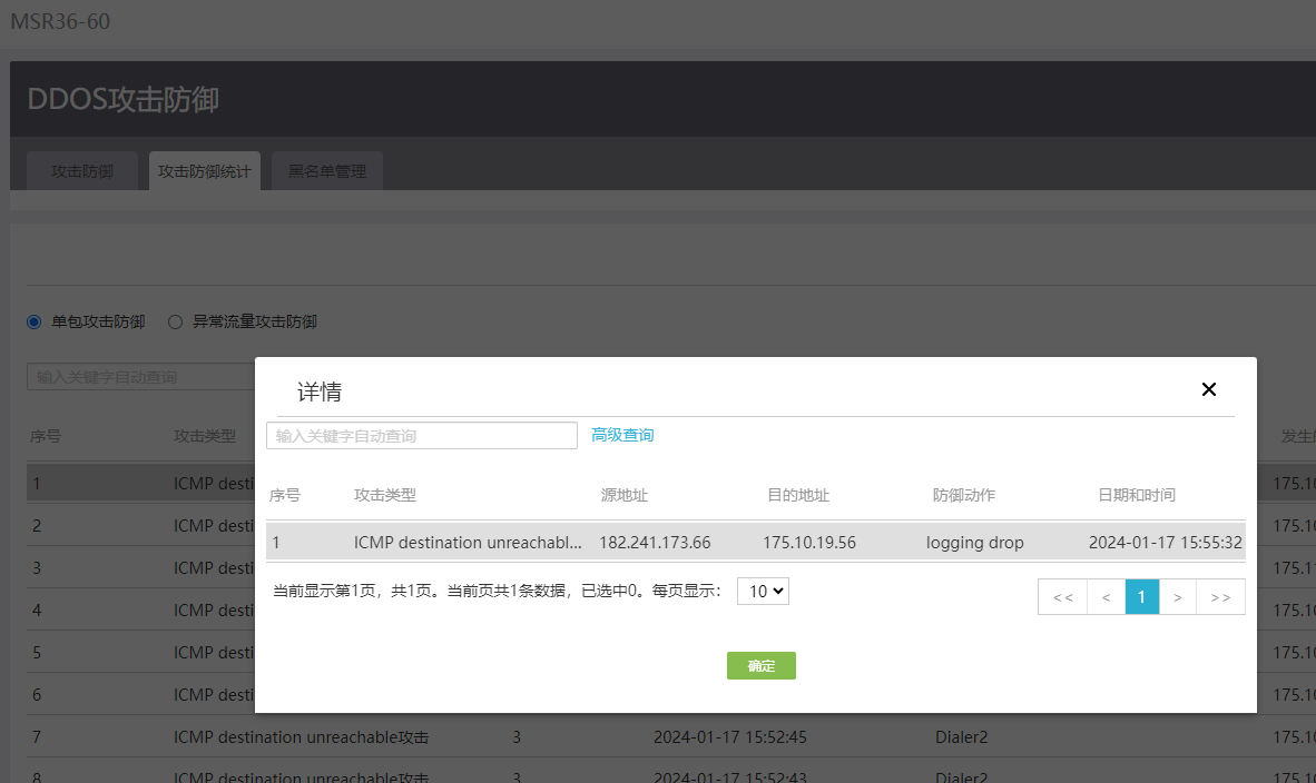 通过配置IP黑名单功能可以对来自或发往指定IP地址的报文进行过滤。