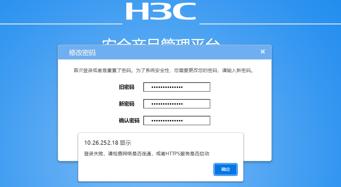 M9000防火墙虚墙web界面登陆不上 总是提示修改密码 修改完密码后就是登录失败,请检查网络是否连通,或者HTTPS服务是否启动 有没有遇到过这个问题的 能帮忙解释下是因为什么吗