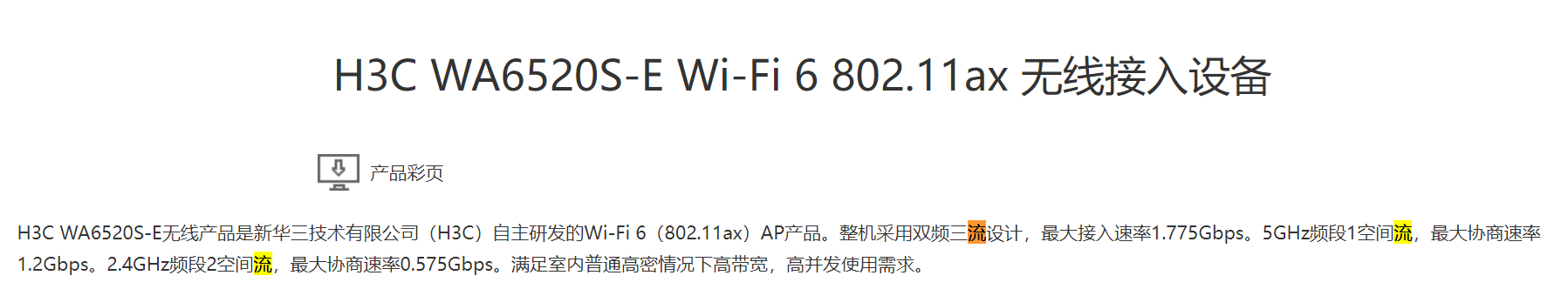 https://www.h3c.com/cn/Products_And_Solution/InterConnect/Products/IP_Wlan/Products/AP_AC/AP/Ordinary_AP/WA6520S_E/ 双频三流设计??? 这个具体的和WA6520S-C四流设计有啥重要的区别呢?