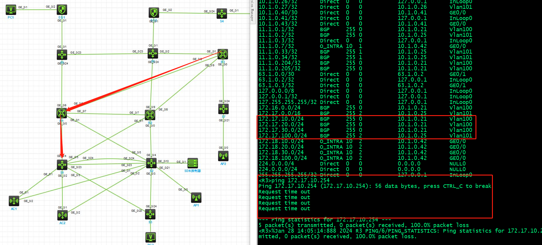 1、R3\R1\S1路由表情况