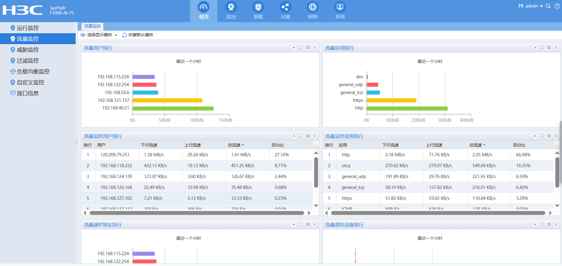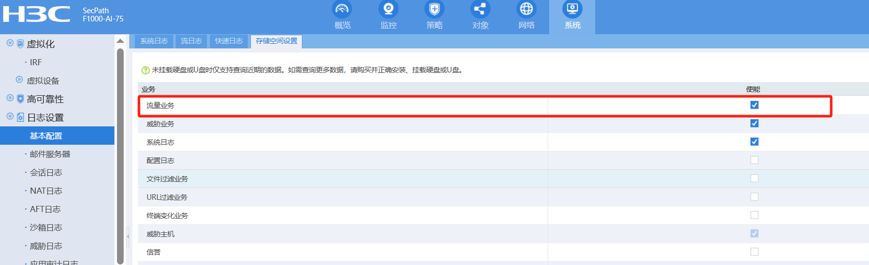 H3C SecPath F100-G3流量监控没有显示,不知道是哪块没选上。