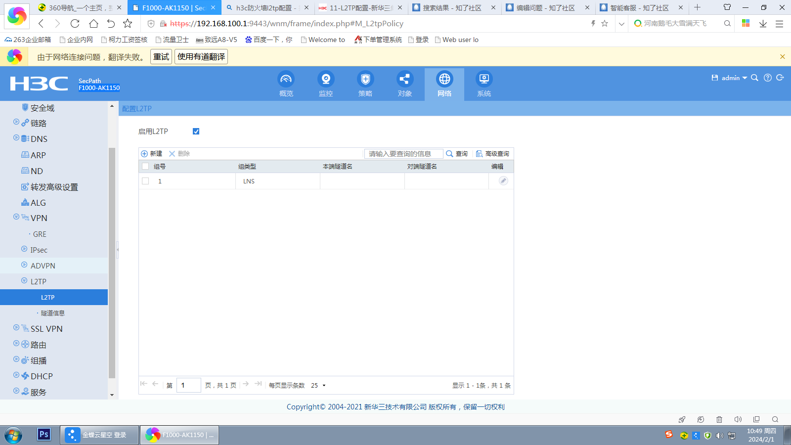 F1000-AK1150该设备设置了VPN,由于连接人数较多,需要更改密码,以前设置VPN的相关人员已经不再公司,请问如何更改VPN的连接密码