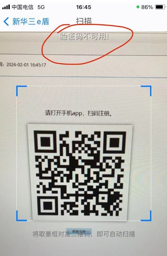 IOS下载新版本的新华三E盾app扫描二维码报错,显示验证码不可用。使用老版本的新华三E盾app可以正常扫码。
