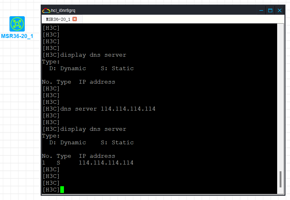 dis dns server是查询设备自身所使用的dns服务器,不配置肯定没有回显。
