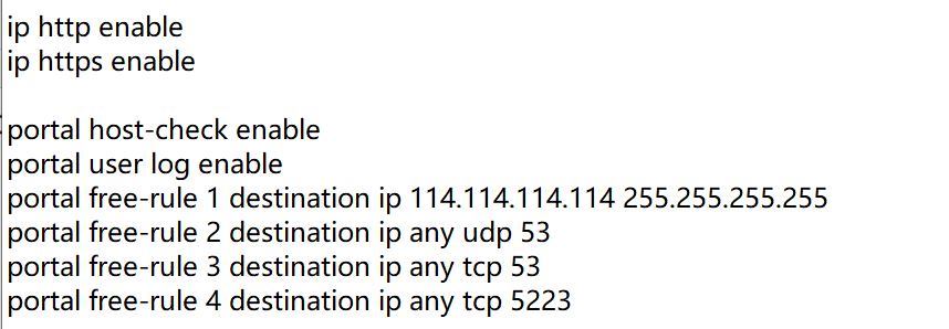 2.配置portal free-rule 100 destination ip x.x.x.x(第一步指定的vlan虚接口对应的ip地址) 32