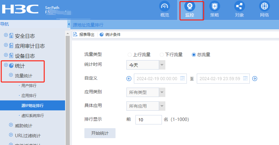 M9008如何基于主机IP,通过web或者命令查询该IP某个时间段的流量大小?