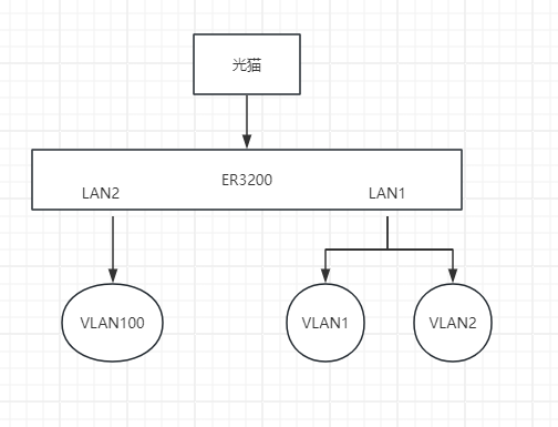 路由器ER3200G2,VLAN1,VLAN2接在LAN1口,VLAN100接在LAN2口。希望实现VLAN1和VLAN2可以互相访问,VLAN100和VLAN1、VLAN2之间互相不可访问。但是三个VLAN都可以访问外网。请问该怎设置?