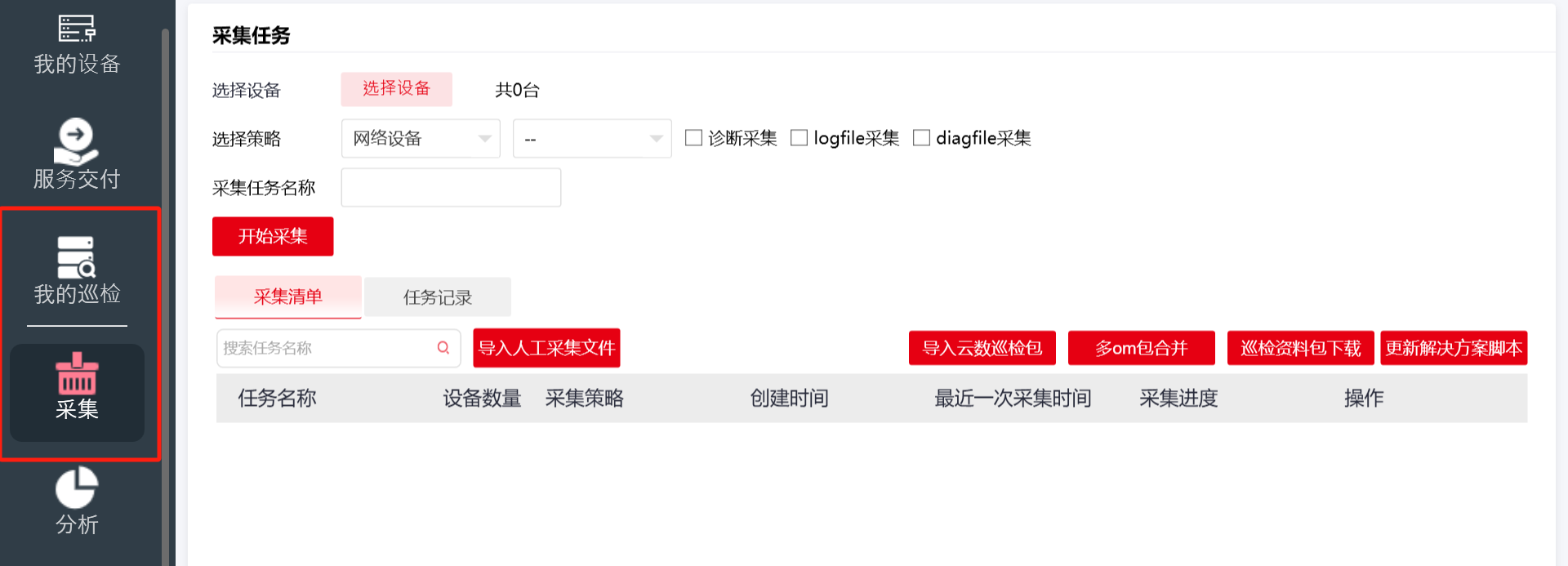 网络设备巡检的话现在可以通过标杆自动化的采集并分析给到巡检结果;同时也可以收集诊断文件上传至iserver上进行巡检分析并给到分析结果
