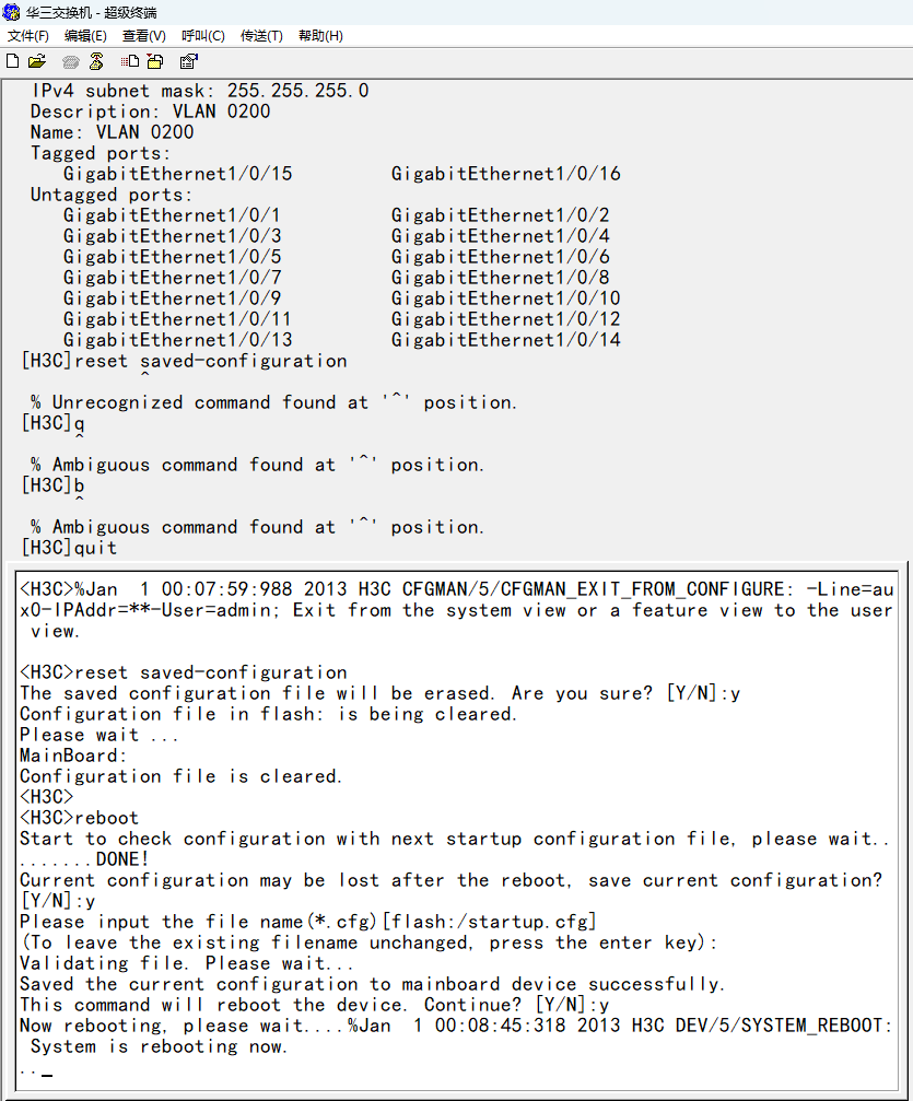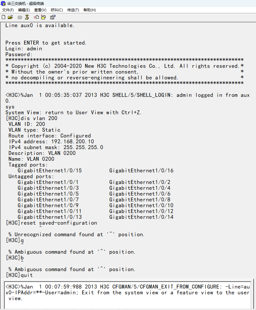 执行reset saved-configuration 重启后能正常访问,vlanif 也能ping通,然后过一段时间又就不行了。