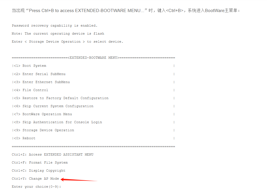 1、设备重启的时候按ctrl+B,然后ctrl+F格式化,然后ctrl+y选择模式