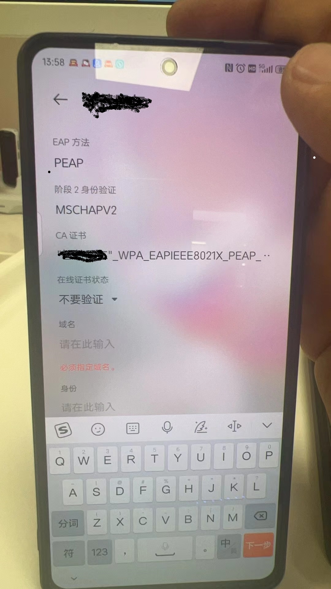 客户某一手机,无线1x认证一直报密码错误认证失败,但换其他手机后该账号可正常认证,仅该手机出现此问题,请问是何原因