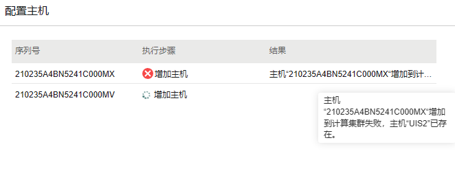 添加主机到集群显示超时,然后我重新再添加一遍又显示已存在,UIS后台可以直接SSH其他几台设备,这要怎么解决