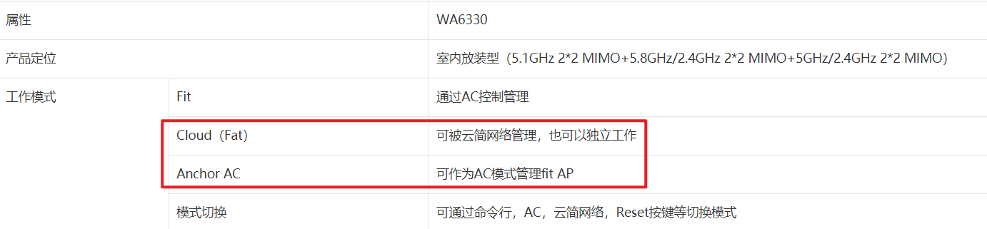 WA6330-FIT:这个型号可以被云简管理。它适用于企业的商业分销场景。
