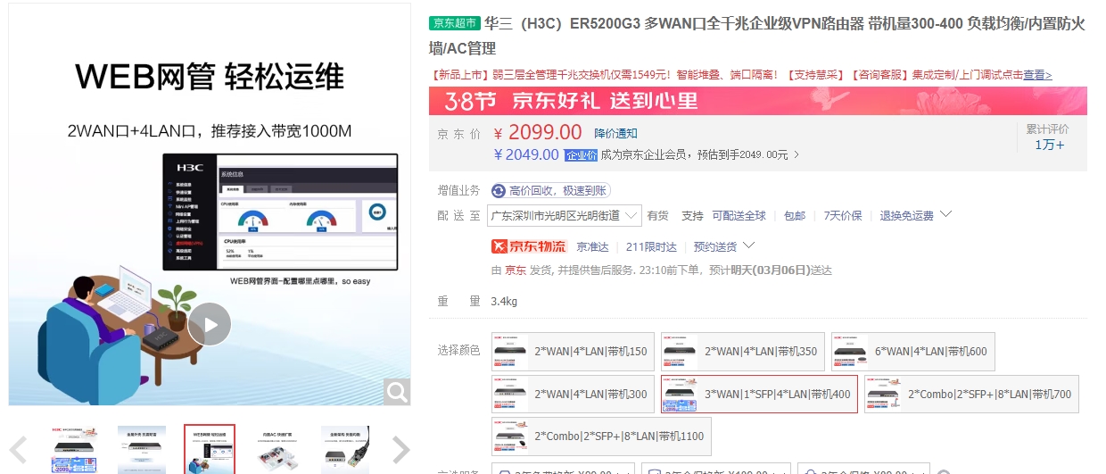 如图,京东自营宣传推荐接入1000M宽带,通过“测速慢排查手册” 设置好DNS和TCP MSS、MTU参数为1452、1492后,速度任然只有500-700兆的网速。