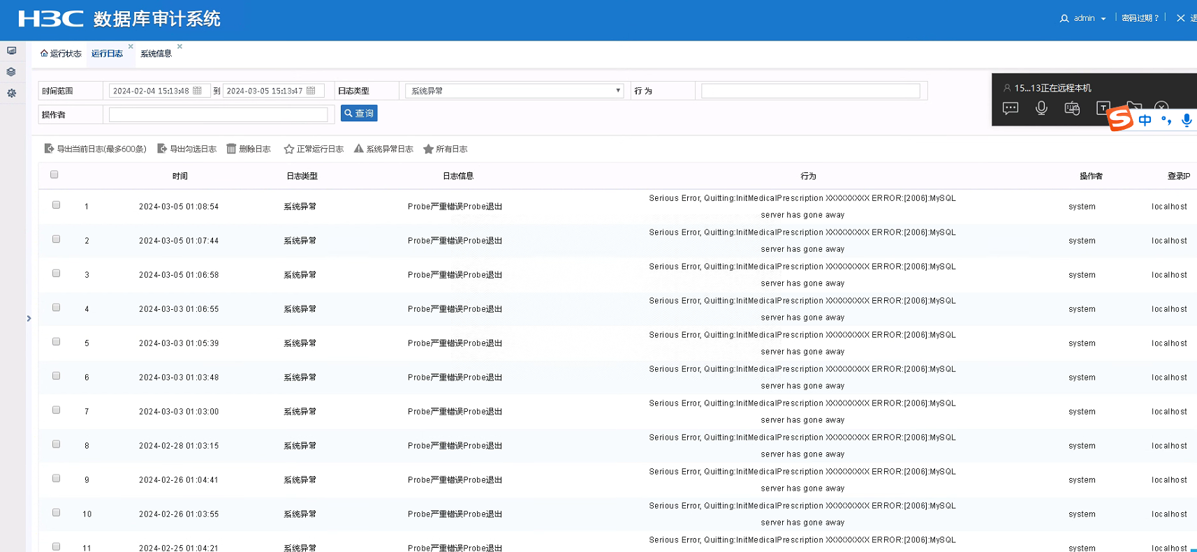 根据您上传的图片,我发现您使用的是 H3C SecPath 数据库审计系统,该系统可以对数据库的操作行为进行记录和分析,以保障数据库的安全和稳定。