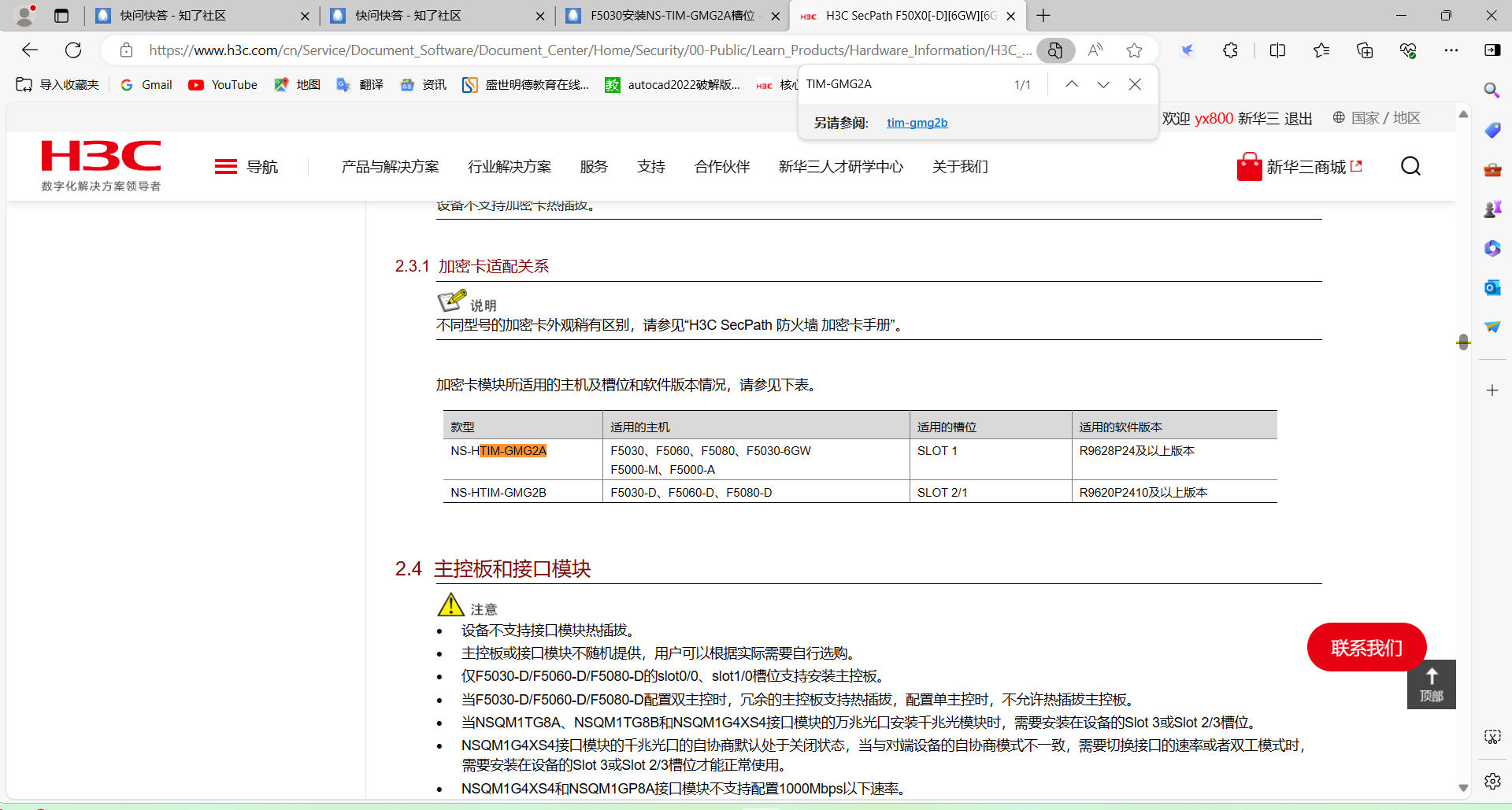 加密卡模块所适用的主机及槽位和软件版本情况,请参见下表。