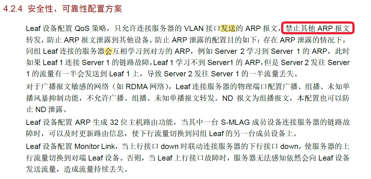 如果按手册配置,leaf的下行接口全部抑制了广播、组播和未知单播,那不就是收不到了服务器的arp广播了吗。