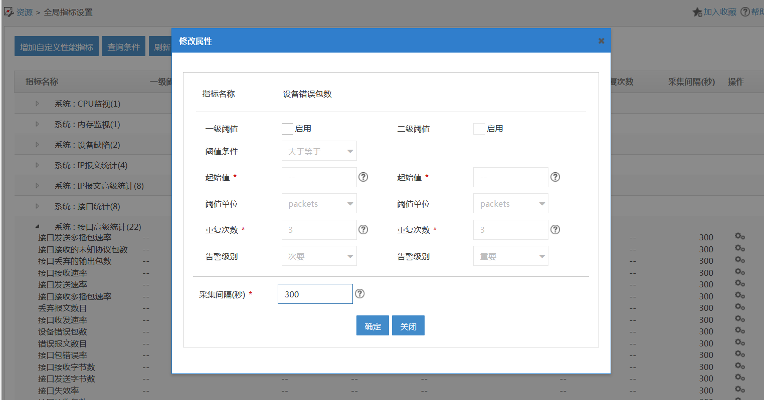 目前看到只能添加以下统计数据,似乎没有CRC错误统计数据可供选择。 • System - Interface Statistics - Interface Sending/Receiving Error Proportion (%) • System - Other Interface Statistics - Number of Packets Sent/Received in Error (packets) • System - Other Interface Statistics - Number of Error Packets (packets) • System - Other Interface Statistics - Proportion of Error Packets on Interface (%)