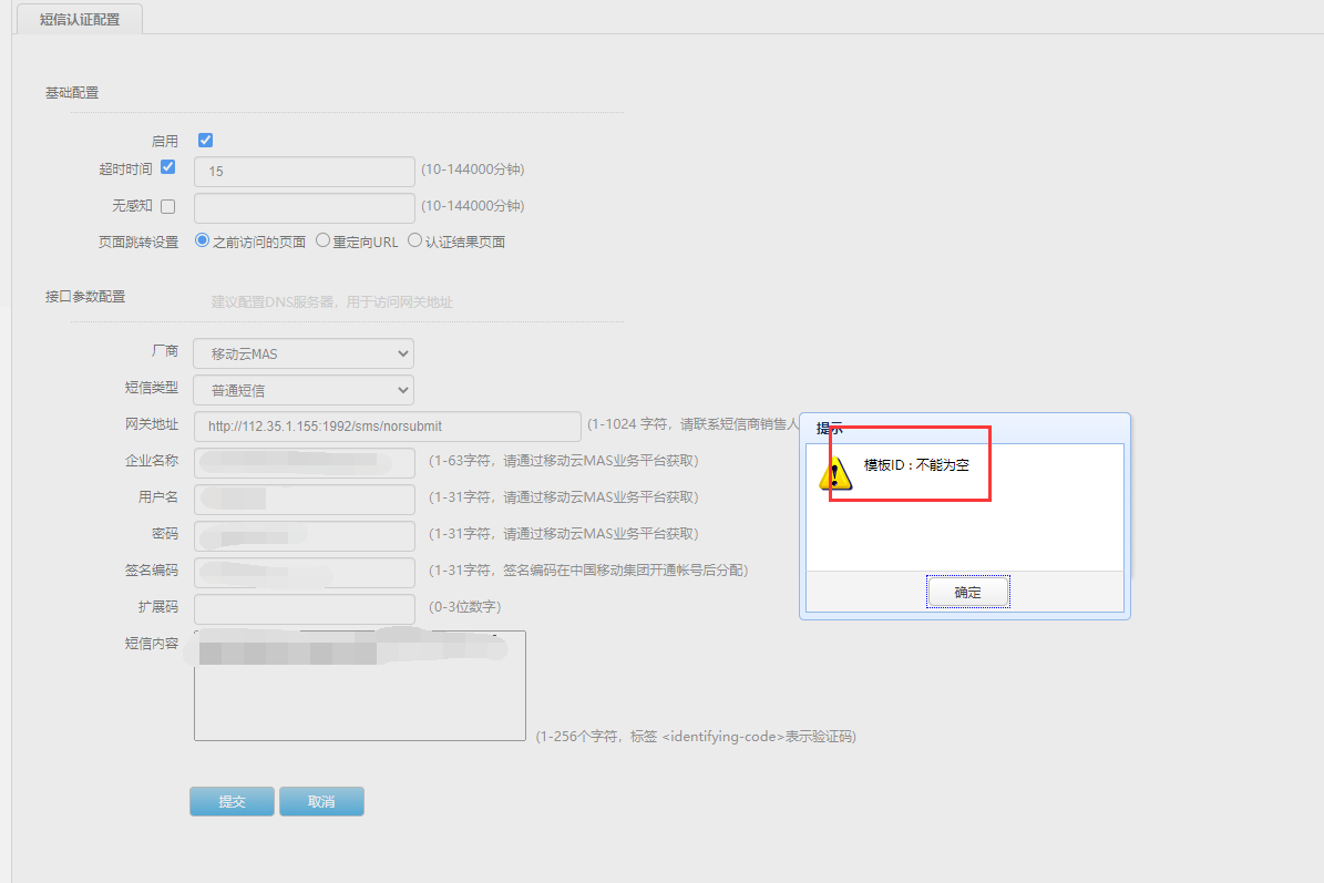 提示模板ID不能为空,可是我选的是普通短信,根本就没有模板ID这个选项。