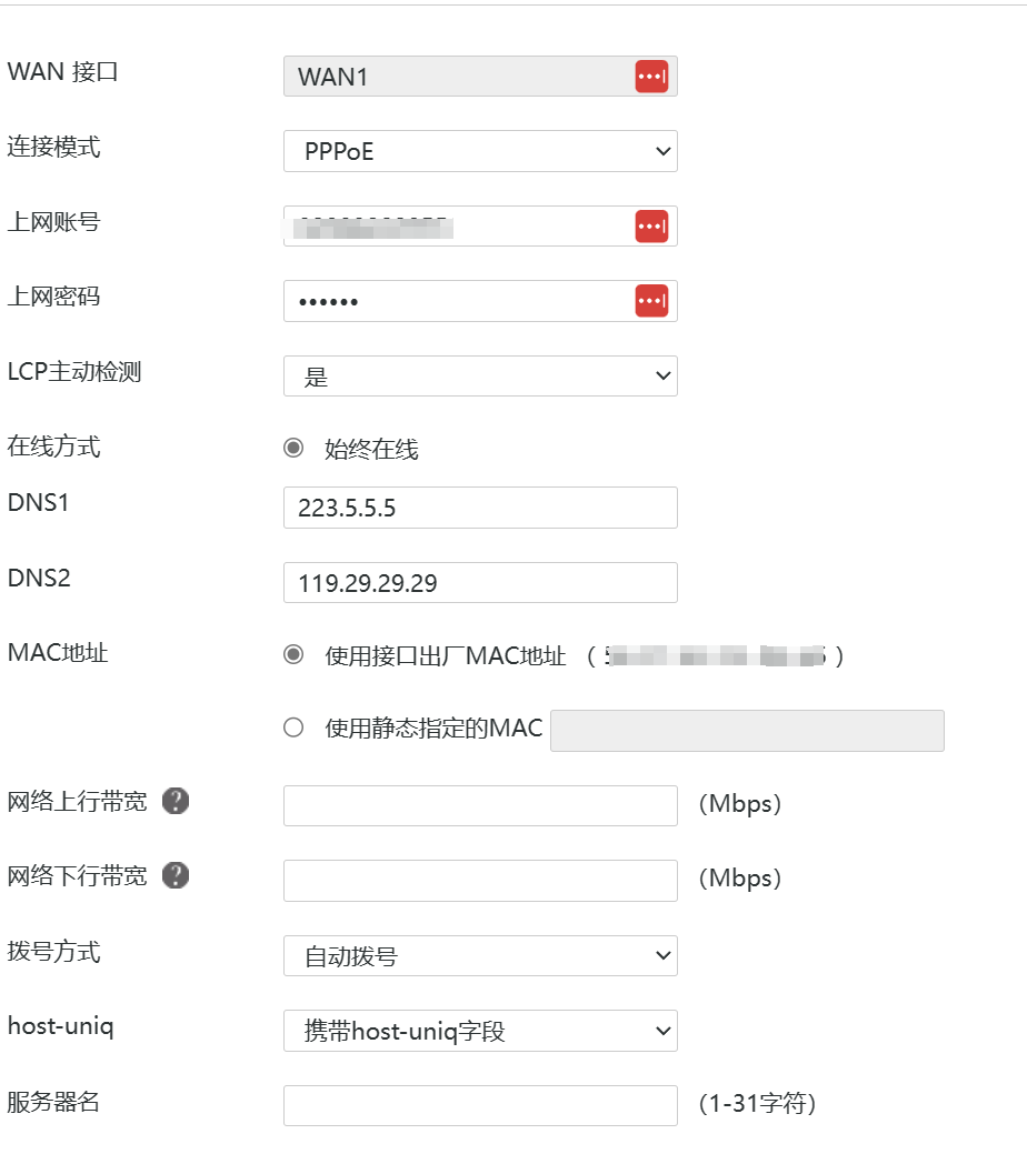 路由器通过PPPoe拨号,并启动NAT。然后Vlan1上提供DHCP为内网分配IP。