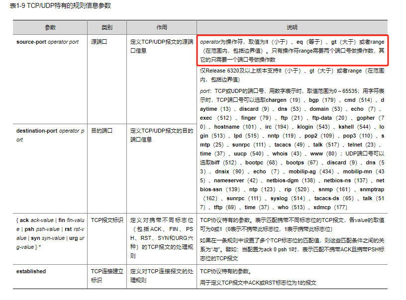 operator为操作符,取值可以为lt(小于)、gt(大于)、eq(等于)、neq(不等于)或者range(在范围内,包括边界值)。只有操作符range需要两个端口号做操作数,其它的只需要一个端口号做操作数