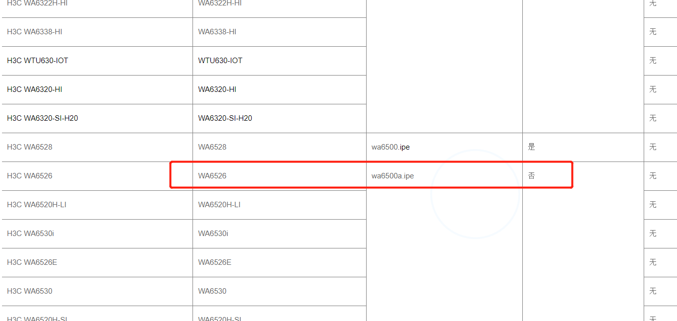 以最新版本为例,下载的软件包里面会有部分AP系列的ipe文件,查看配套的说明(可在当前下载的版本界面搜索具体的AP型号,如果后面是“是”,说明AC升级之后自带AP文件,若果是“否”,就不自带,需要上传对应的ipe文件),该ipe文件在下载的AC升级包里面可以看见