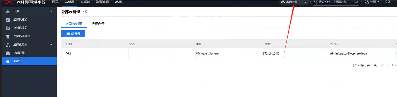 CAS平台外部云纳管VMware,添加成功后无法显示VMware资源