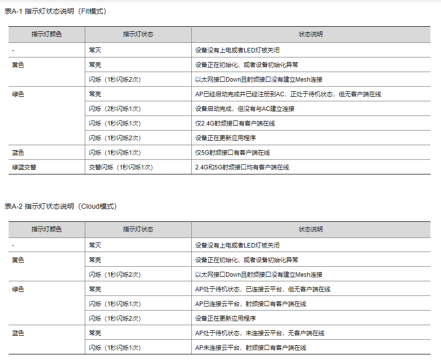 WAP662无线接入点的指示灯说明如表A-1所示。