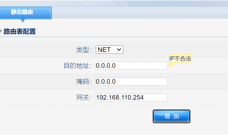 静态路由0.0.0.0/0无法添加