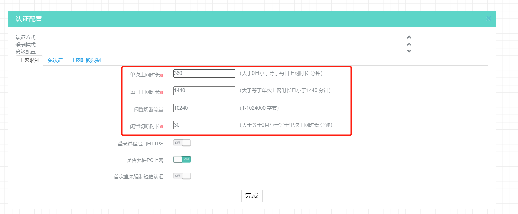 (4) 点击<完成>按钮或页面右上角的“发布”以应用认证配置的所有修改。