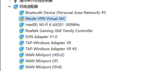提示 获取虚拟网卡失败 请检查网络连接中网卡 inode vpn virtual nic 状态