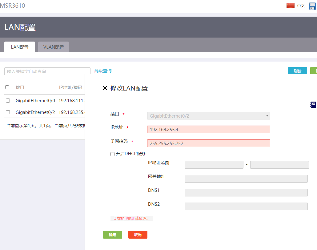 msr 3600 x1 端口想设置成192.168.255.4/30 的ip地址 发现这样的情况