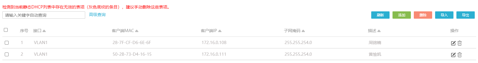 路由器上设置静态dhcp失效,网段是172.16.0.1/23,但是路由器显示静态dhcp列表失效