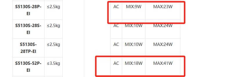 S5130S-28P-EI-H1 S5130S-52P-EI-H1 这两个型号的功率是多少