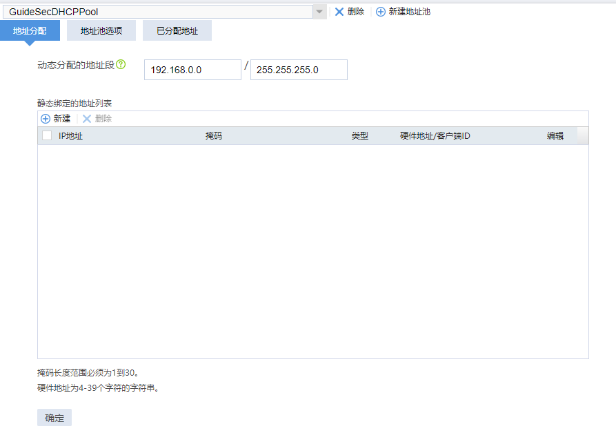 缺省情况下,未配置动态分配的IP地址范围。