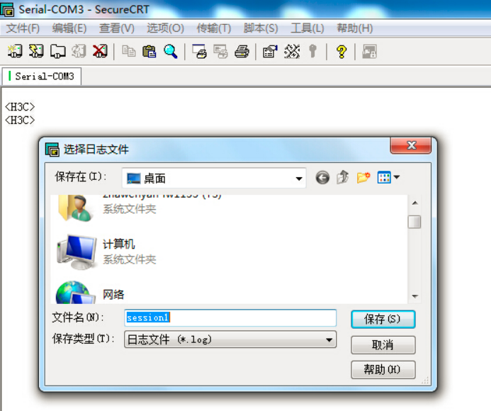 # 如果需要收集和记录大量的操作过程,点击【文件】--【记录会话】功能,并设置保存在本地电脑上的路径和文件名。如下所示: