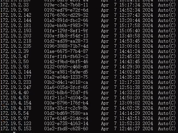 您好,dis dhcp server ip-in-use 查看所有分配出去的地址看下是否可以看